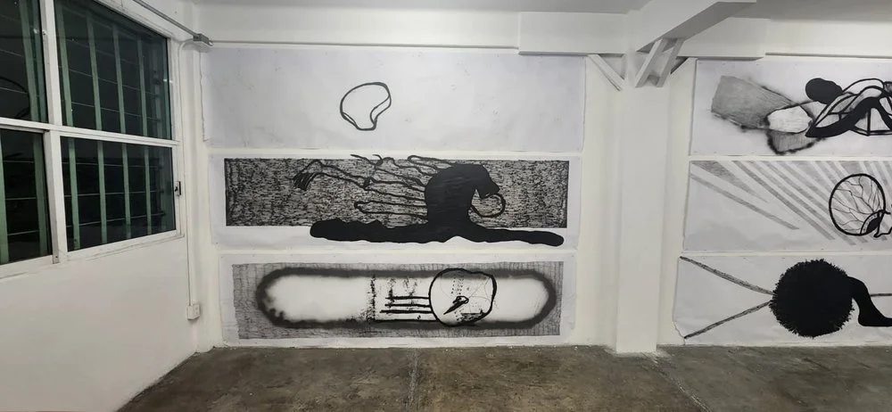 The project by Alonso González Hernández was based on his relationship with the studio space, determining the size of each piece by the length of the walls, aligning cuts with the floor joints, using gesture as the main conductor, and emphasizing the use of office materials.