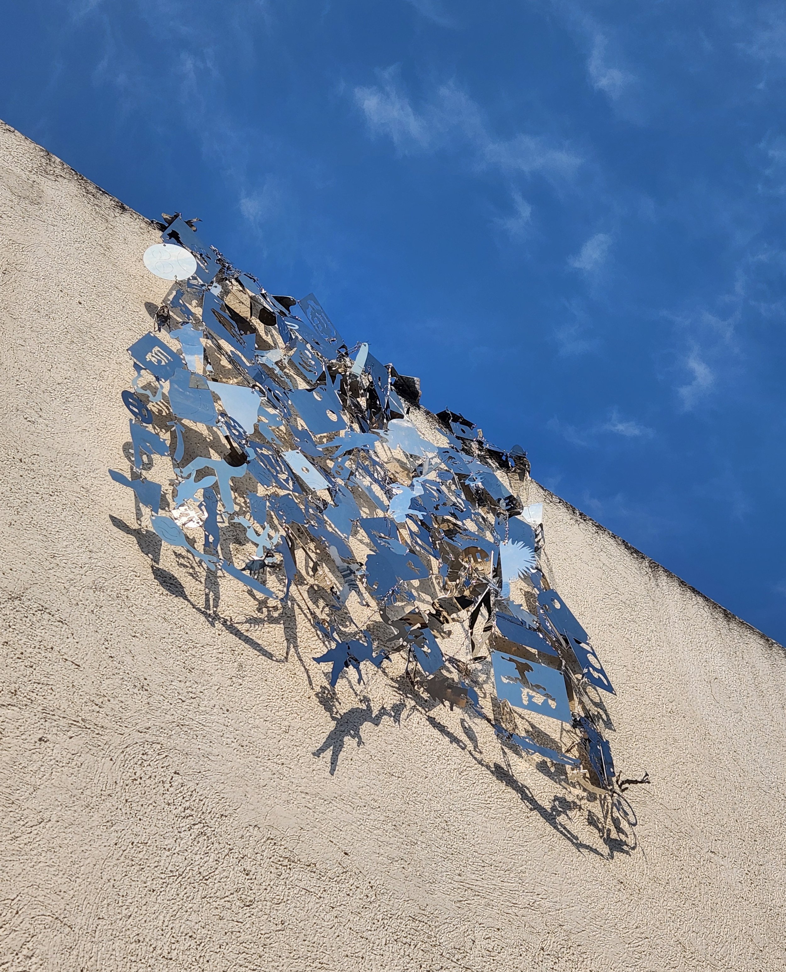 El proyecto para la residencia en Proyecto Flora Uno se basó en integrar al grupo de Acompáñales en mi práctica. Utilizando las sesiones de trabajo como énfasis, fue a través de dinámicas informales centradas en el dibujo y otras pensadas colectivamente que producimos una instalación escultórica sonora concebida para admitir múltiples disposiciones espaciales. La cual consta de 210 piezas cortadas con CNC láser en acero inoxidable, un promedio de 600 ganchos en S y una bocina que reproduce en bucle un audio con los nombres de las 23 personas que participamos en el proyecto. Este audio fue creado en respuesta a la noción de cómo “firmar” una pieza en conjunto.