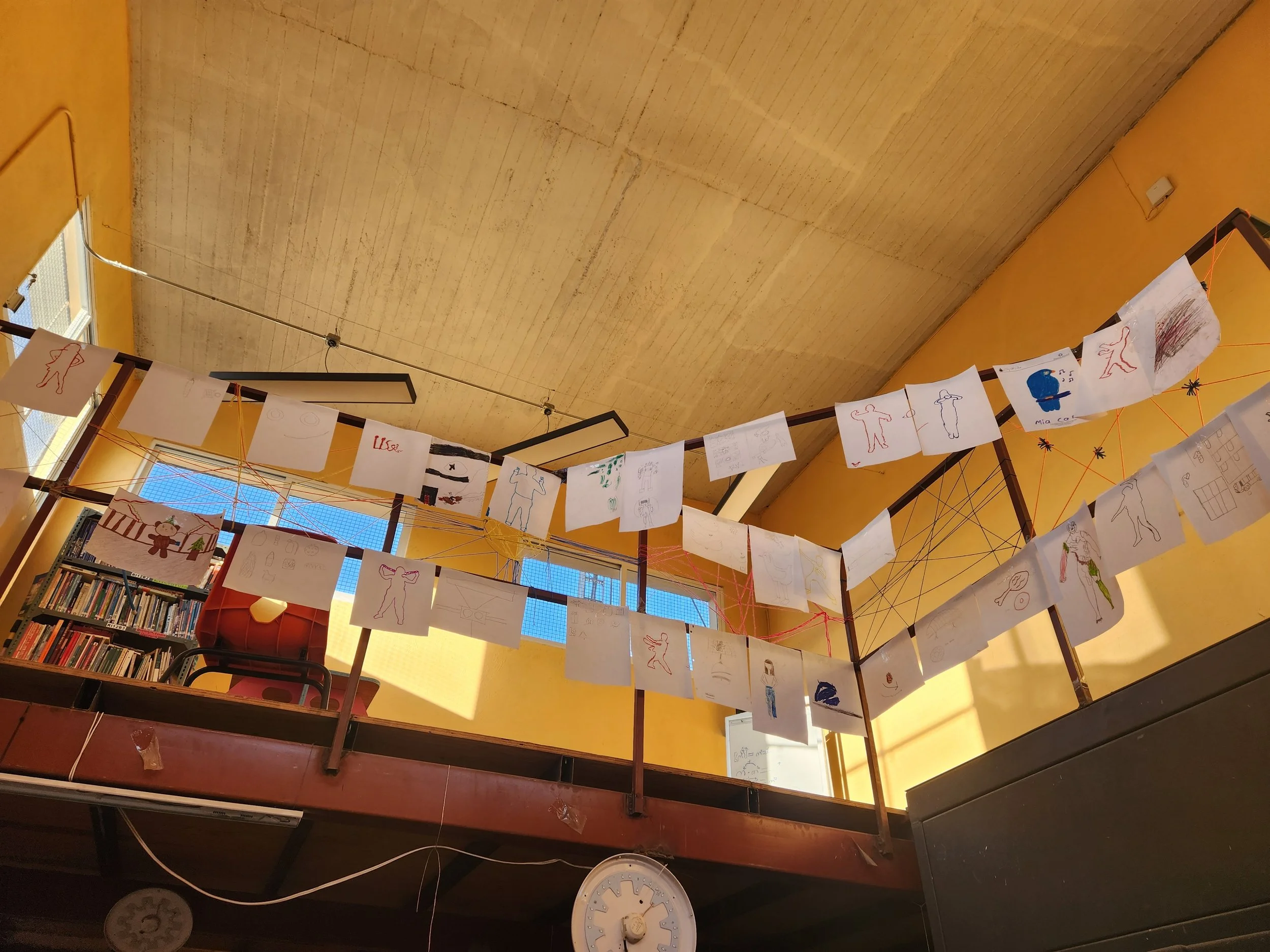 El archivo de dibujos generado durante el proyecto fue utilizado para una instalación en el salón de Acompáñales, siguiendo un gesto de intervención de uno de nuestros participantes.